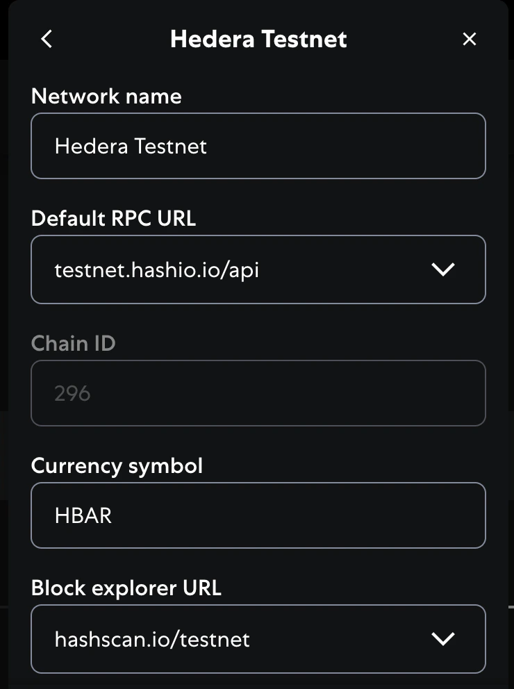 - Network Name: Hedera Testnet
