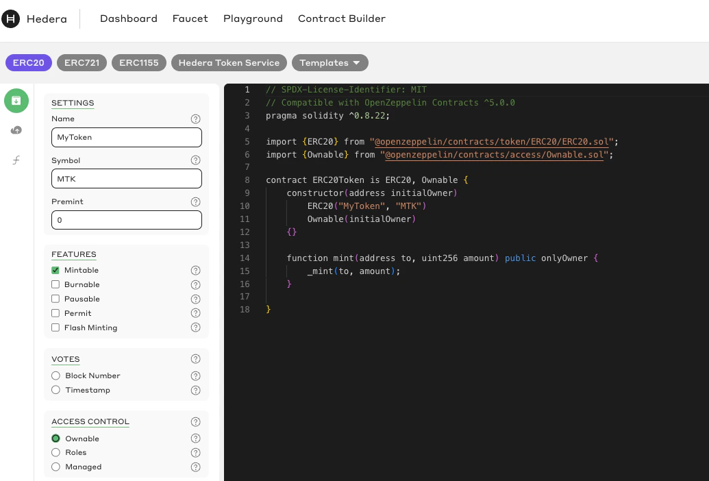 The Hedera Contract Builder allows you to deploy smart contracts on the Hedera testnet quickly. The tool is provided through the Hedera Developer Portal.Step 1: Visit the Hedera Contract Builder